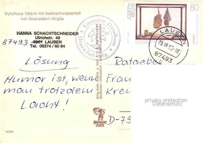 72979758 alte Postkarte Oberstdorf Oytalhaus mit Seebachwasserfall Allgaeuer Alpen postalisch gelaufen Erhaltung siehe scans [FriedD77] KatCode: 11110009780133