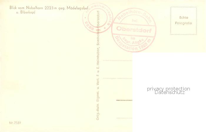 73808408 Oberstdorf Panorama Blick vom Nebelhorn gegen Maedelegabel und Biberkopf Gebirgspanorama postalisch nicht gelaufen Erhaltung siehe scans [FriedD77] KatCode: 11110009780133