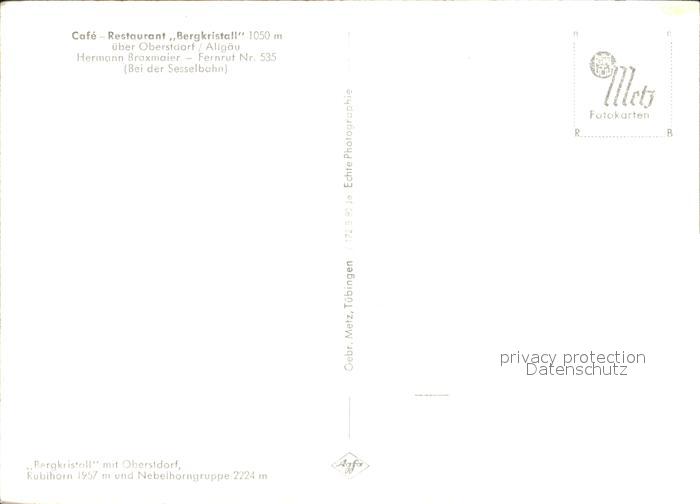 72472746 Oberstdorf Panorama Cafe Restaurant Bergkristall postalisch nicht gelaufen Erhaltung siehe scans KatCode: 11110009780133