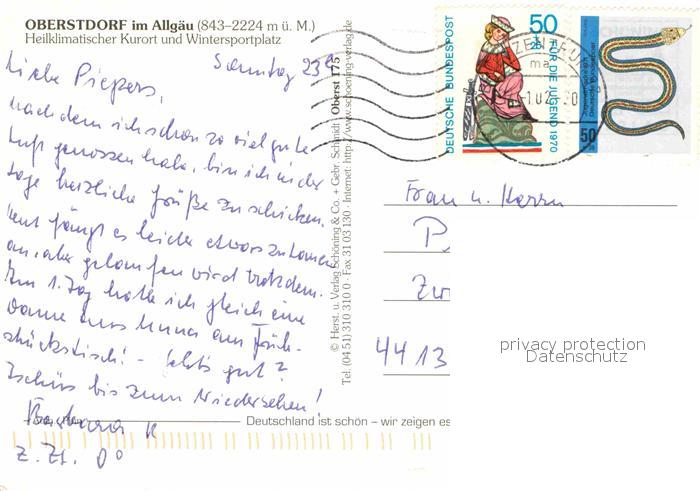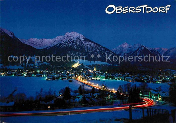72721057 alte Postkarte Oberstdorf Panorama Kurort Wintersportplatz Allgaeuer Alpen Nachtaufnahme postalisch gelaufen Erhaltung siehe scans [FriedD77] KatCode: 11110009780133