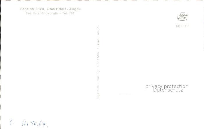 72148826 Oberstdorf Pension Erika postalisch nicht gelaufen Erhaltung siehe scans KatCode: 11110009780133