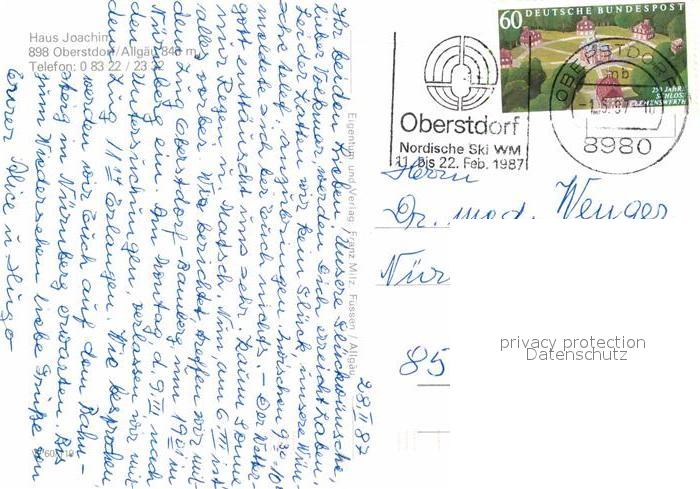72820448 alte Postkarte Oberstdorf Pension Haus Joachim Winterpanorama postalisch gelaufen Erhaltung siehe scans [FriedD77] KatCode: 11110009780133