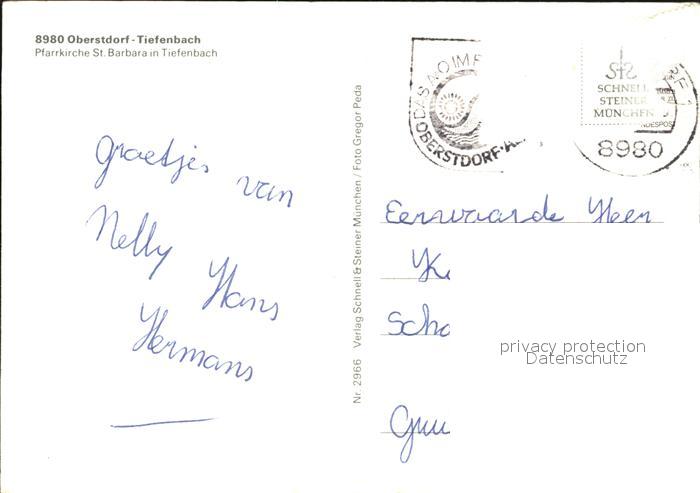 72410139 alte Postkarte Oberstdorf Pfarrkirche Sankt Barbara Tiefenbach postalisch gelaufen Erhaltung siehe scans KatCode: 11110009780133