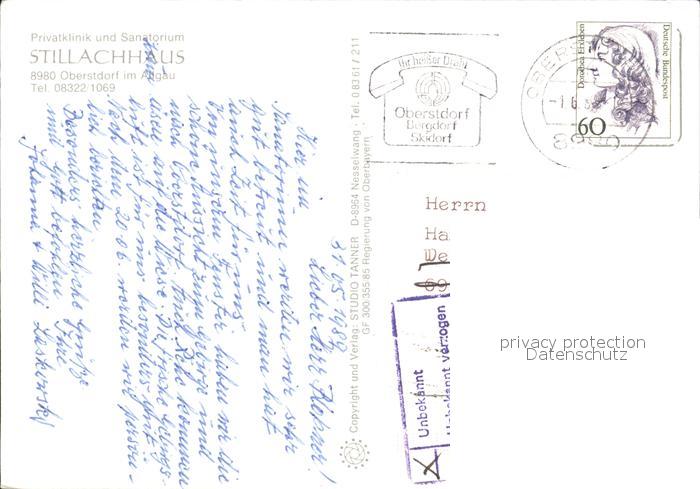 72022143 alte Postkarte Oberstdorf Privatklinik Sanatorium Stillachhaus Fliegeraufnahme postalisch gelaufen KatCode: 11110009780133