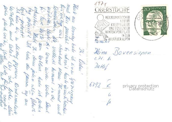 72947997 alte Postkarte Oberstdorf Restaurant Cafe am Wasser Winterpanorama Allgaeuer Alpen postalisch gelaufen Erhaltung siehe scans [FriedD77] KatCode: 11110009780133