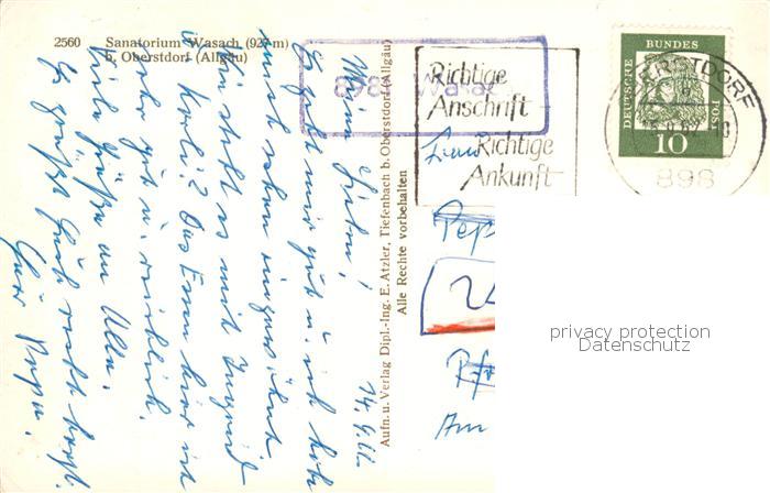 73839178 alte Postkarte Oberstdorf Sanatorium Wasach postalisch gelaufen Erhaltung siehe scans [WerneD78] KatCode: 11110009780133