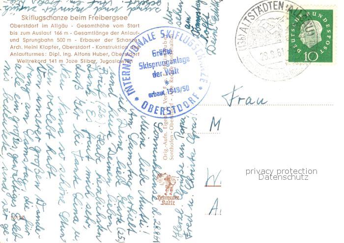 73154562 alte Postkarte Oberstdorf Skiflugschanze postalisch gelaufen Erhaltung siehe scans [LiesaD40] KatCode: 11110009780133