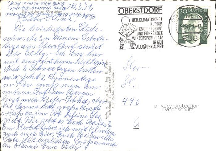 72031004 alte Postkarte Oberstdorf Skiflugschanze postalisch gelaufen Erhaltung siehe scans KatCode: 11110009780133