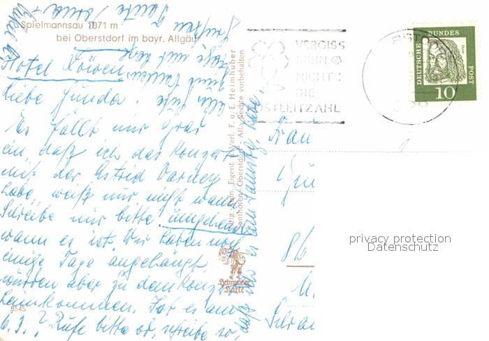 72761175 alte Postkarte Oberstdorf Spielmannsau postalisch gelaufen Erhaltung siehe scans [LiesaD40] KatCode: 11110009780133