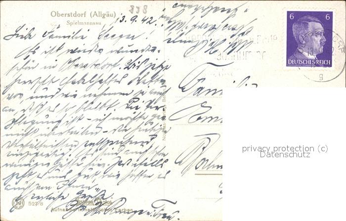 71525531 alte Postkarte Oberstdorf Spielmannsau postalisch gelaufen Erhaltung siehe scans KatCode: 11110009780133