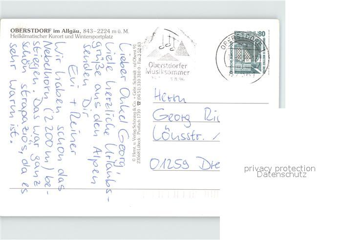72431936 alte Postkarte Oberstdorf Stadtansicht postalisch gelaufen Erhaltung siehe scans KatCode: 11110009780133