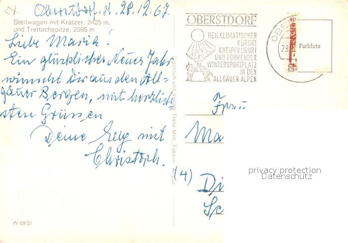 73309973 alte Postkarte Oberstdorf Stellwagen Kratzer Trettachspitze postalisch gelaufen Erhaltung siehe scans [NatalD47] KatCode: 11110009780133
