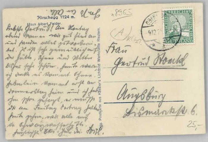 40246220 Oberstdorf [Stempelabschlag] Hirschegg x 1928 KatCode 11110009780133