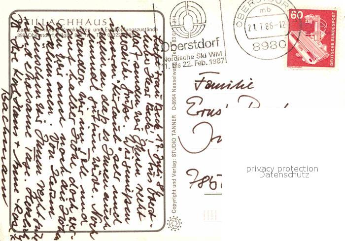 72849781 alte Postkarte Oberstdorf Stillachhaus postalisch gelaufen Erhaltung siehe scans [NatalD47] KatCode: 11110009780133