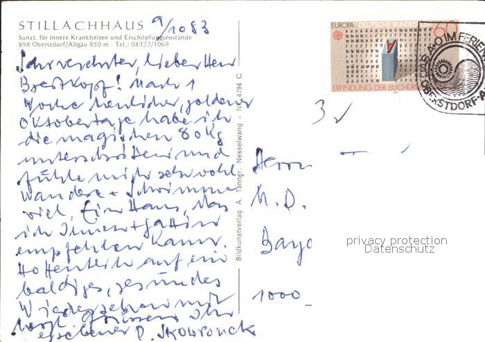 72062766 alte Postkarte Oberstdorf Stillachhaus postalisch gelaufen Erhaltung siehe scans KatCode: 11110009780133