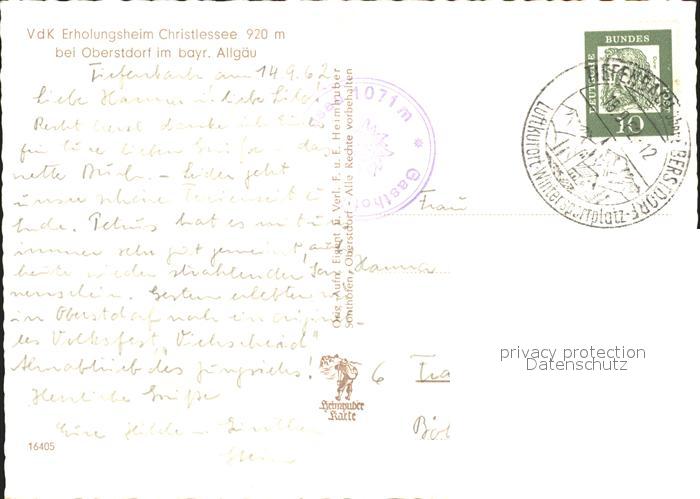 71956323 alte Postkarte Oberstdorf VdK Erholungsheim Christlesee postalisch gelaufen Erhaltung siehe scans KatCode: 11110009780133