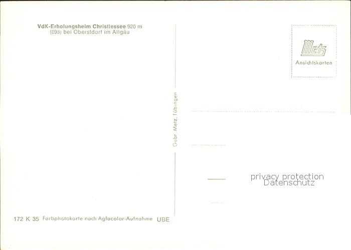 72249259 Oberstdorf VdK Erholungsheim Christlessee postalisch nicht gelaufen Erhaltung siehe scans KatCode: 11110009780133