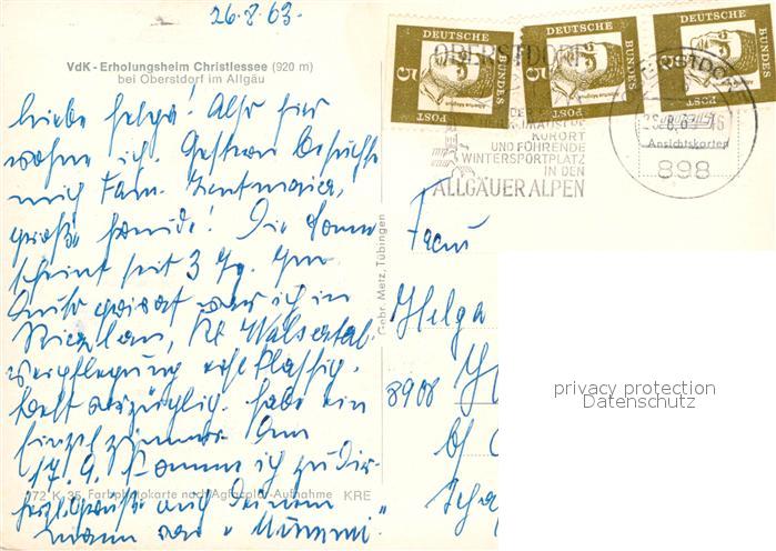 73010078 alte Postkarte Oberstdorf VdK Erholungsheim Christlessee postalisch gelaufen Erhaltung siehe scans [WerneD78] KatCode: 11110009780133