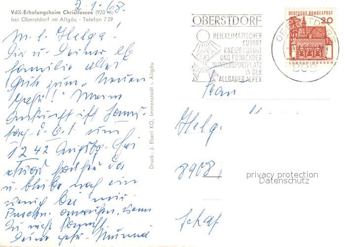 73009308 alte Postkarte Oberstdorf VdK Erholungsheim Christlessee postalisch gelaufen Erhaltung siehe scans [WerneD78] KatCode: 11110009780133