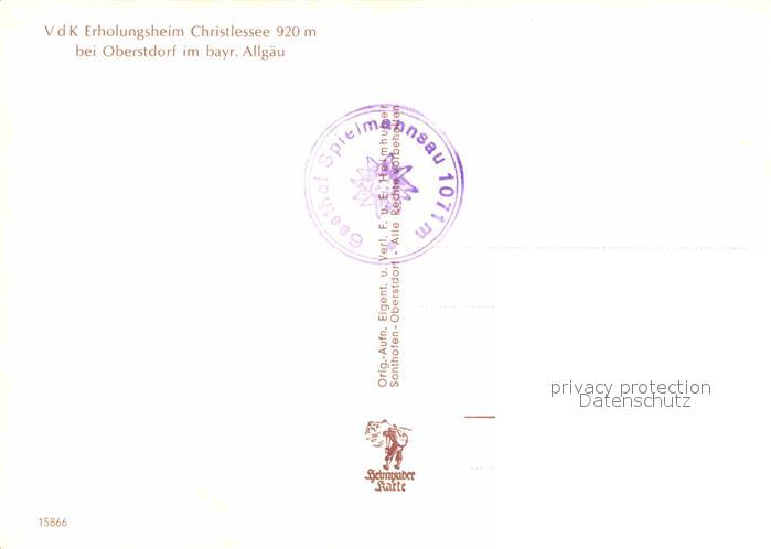 72819709 Oberstdorf VdK Erholungsheim Christlessee postalisch nicht gelaufen Erhaltung siehe scans [NatalD47] KatCode: 11110009780133