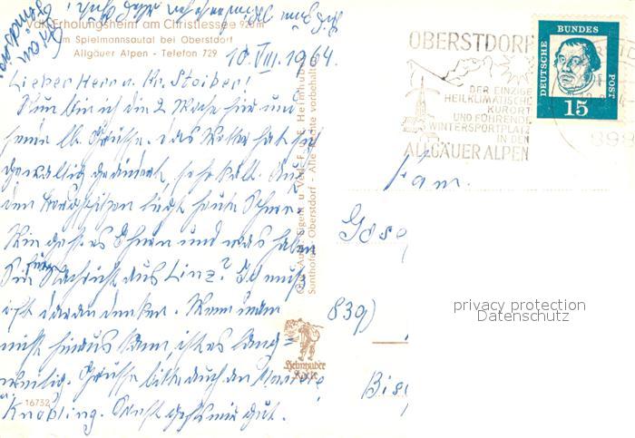73162838 alte Postkarte Oberstdorf VdK Erholungsheim Christlessee Gastraum postalisch gelaufen Erhaltung siehe scans [WerneD78] KatCode: 11110009780133