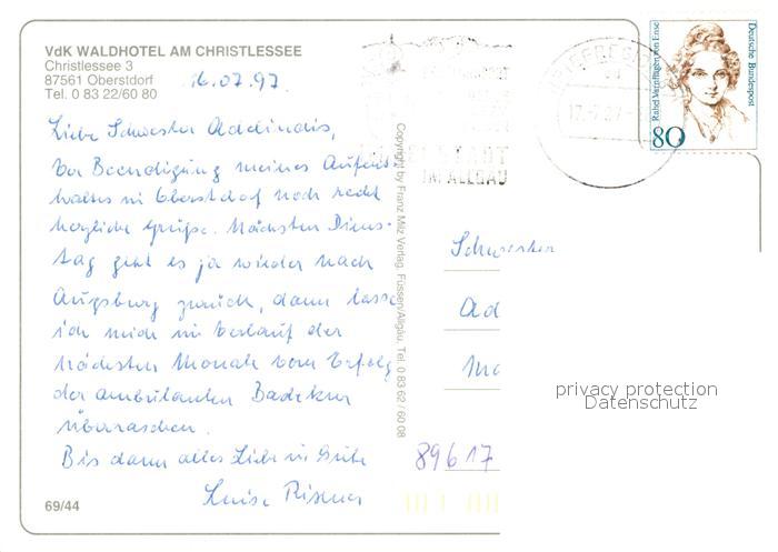73008835 alte Postkarte Oberstdorf VdK Waldhotel am Christessee Terrasse postalisch gelaufen Erhaltung siehe scans [WerneD78] KatCode: 11110009780133
