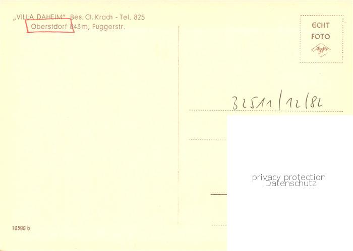 73759453 Oberstdorf Villa Daheim postalisch nicht gelaufen Erhaltung siehe scans [FriedD77] KatCode: 11110009780133