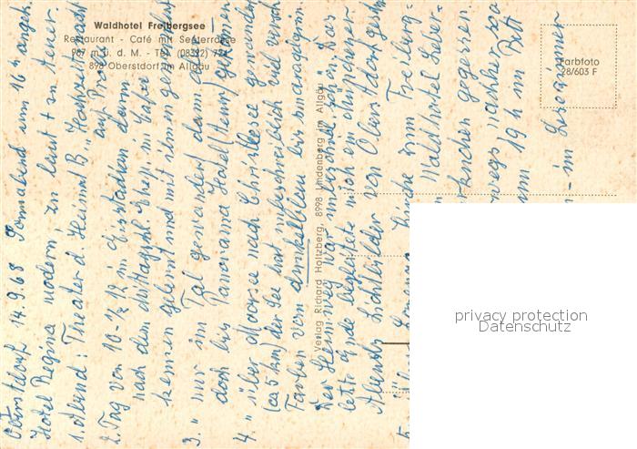 73721689 Oberstdorf Waldhotel Freibergsee Gaststube postalisch nicht gelaufen Erhaltung siehe scans [WerneD78] KatCode: 11110009780133