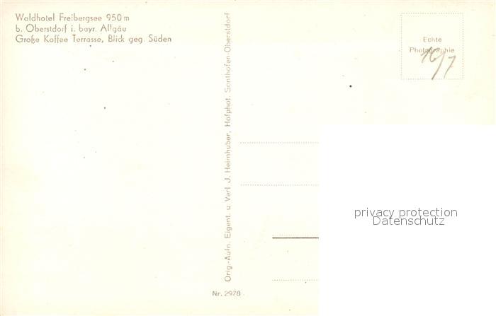 73142714 Oberstdorf Waldhotel Freibergsee postalisch nicht gelaufen Erhaltung siehe scans [NatalD47] KatCode: 11110009780133