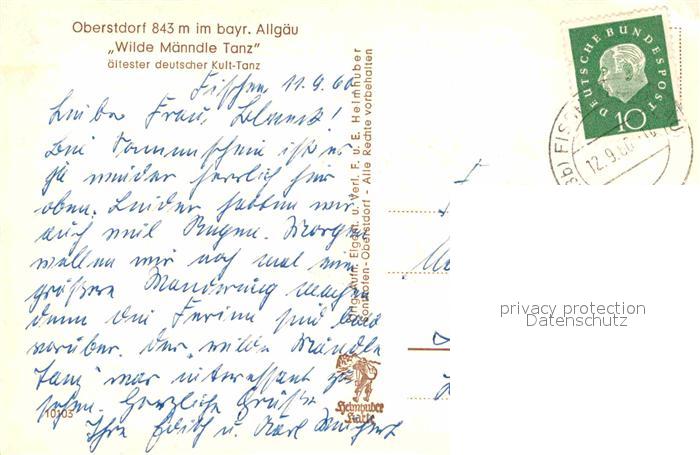 72818427 alte Postkarte Oberstdorf Wilde Maenndle Tanz aeltester deutscher Kulttanz postalisch gelaufen Erhaltung siehe scans [FriedD77] KatCode: 11110009780133