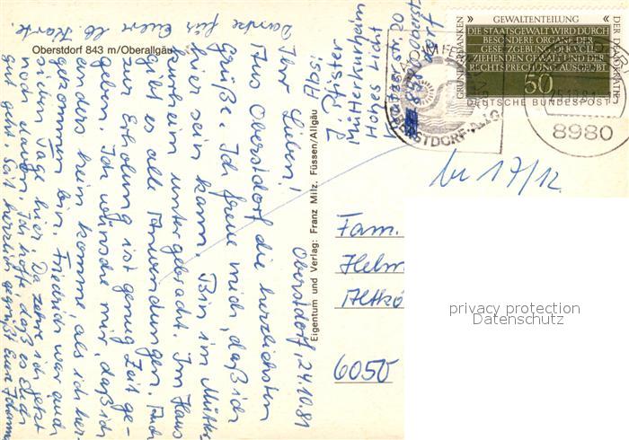 73252439 alte Postkarte Oberstdorf Zierbrunnenschnitzerei Details postalisch gelaufen Erhaltung siehe scans [WerneD78] KatCode: 11110009780133