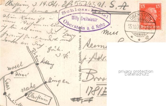 73575831 alte Postkarte Oberstein Nahe Totalansicht mit Felsenkirche postalisch gelaufen Erhaltung siehe scans [FriedD77] KatCode: 11110007134045