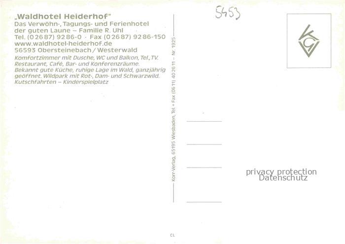 74050130 Obersteinebach Waldhotel Heiderhof Gastraeume Wildschweine Rehwild postalisch nicht gelaufen Erhaltung siehe scans [WerneD78] KatCode: 11110007132085