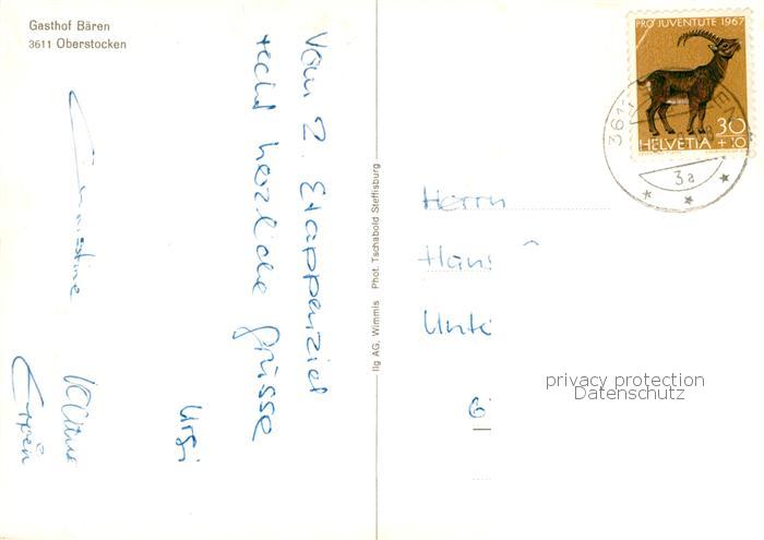 13864593 alte Postkarte Oberstocken Niedersimmental Gasthof Baeren postalisch gelaufen Erhaltung siehe scans [WerneD78] KatCode: 11470060205552