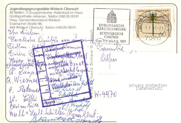 73164408 alte Postkarte Obersuhl Jugendbegegnungsstaette Wildeck Tennisplatz Spielzimmer Hallenbad postalisch gelaufen Erhaltung siehe scans [WerneD78] KatCode: 11110006632020