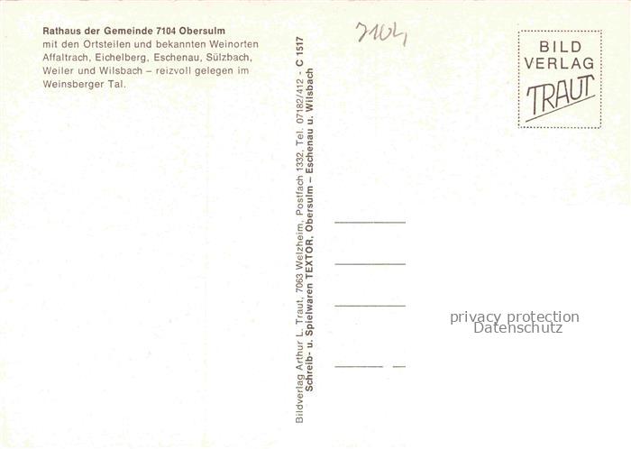 74051031 Obersulm Rathaus postalisch nicht gelaufen Erhaltung siehe scans [FriedD77] KatCode: 11110008125110
