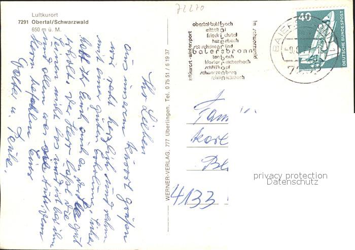71900128 alte Postkarte Obertal Baiersbronn postalisch gelaufen KatCode: 11110008237004