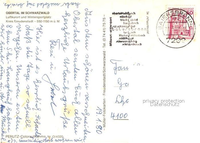 73312225 alte Postkarte Obertal Baiersbronn postalisch gelaufen Erhaltung siehe scans [NatalD47] KatCode: 11110008237004
