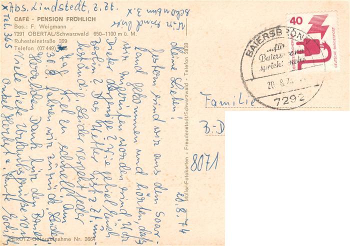 73905779 alte Postkarte Obertal Baiersbronn Cafe Pension Froehlich Gastraeume Terrasse postalisch gelaufen Erhaltung siehe scans [FriedD77] KatCode: 11110008237004