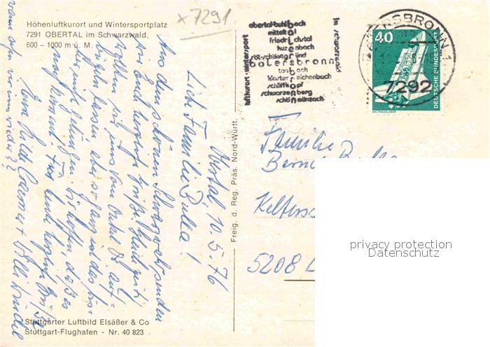 72872697 alte Postkarte Obertal Baiersbronn Fliegeraufnahme postalisch gelaufen Erhaltung siehe scans [LiesaD40] KatCode: 11110008237004