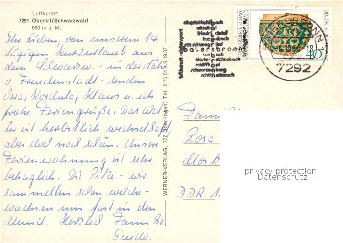 73320949 alte Postkarte Obertal Baiersbronn Fliegeraufnahme postalisch gelaufen Erhaltung siehe scans [WerneD78] KatCode: 11110008237004