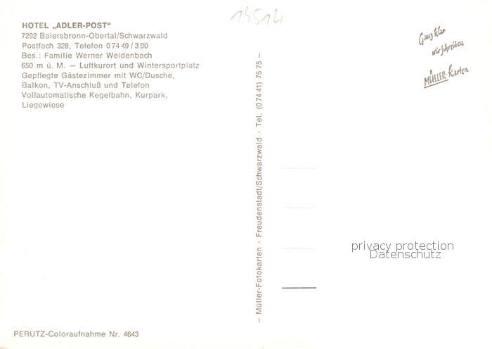 73796052 Obertal Baiersbronn Hotel Adler Post postalisch nicht gelaufen Erhaltung siehe scans [WerneD78] KatCode: 11110008237004