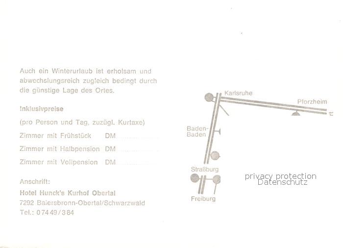 73028969 Obertal Baiersbronn Hotel Hunck’s postalisch nicht gelaufen Keine Postkarte (siehe scan) Erhaltung siehe scans [PaolaD17] KatCode: 11110008237004