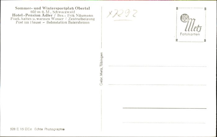 40768473 Obertal Baiersbronn Hotel Pension Adler postalisch nicht gelaufen Alte Ansichtskarte Postkarte Katcode 11110008237004
