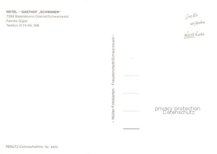 73311994 Obertal Baiersbronn Hotel Schwanen postalisch nicht gelaufen Erhaltung siehe scans [NatalD47] KatCode: 11110008237004