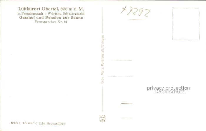 41786345 Obertal Baiersbronn Landhaus Gasthof Pension zur Sonne Bromsilber postalisch nicht gelaufen Alte Ansichtskarte Postkarte hz_F Katcode 11110008237004