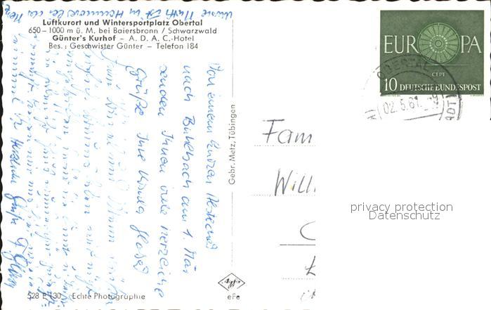 72391937 alte Postkarte Obertal Baiersbronn Luftkurort Wintersportplatz postalisch gelaufen Erhaltung siehe scans KatCode: 11110008237004