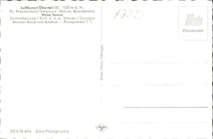 40762360 Obertal Baiersbronn Obertal Freudenstadt Hotel Sonne KatCode 11110008237004