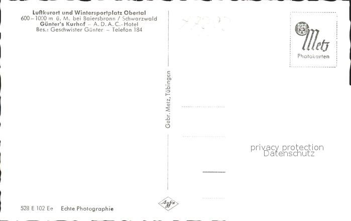 41768410 Obertal Baiersbronn Panorama Luftkurort Wintersportplatz Schwarzwald postalisch nicht gelaufen Erhaltung siehe scans KatCode: 11110008237004