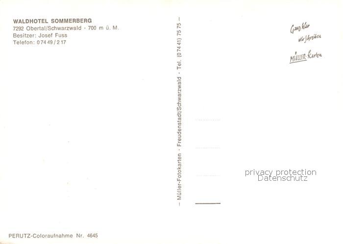 73306708 Obertal Baiersbronn Waldhotel Sommerberg postalisch nicht gelaufen Erhaltung siehe scans [KathaD81] KatCode: 11110008237004